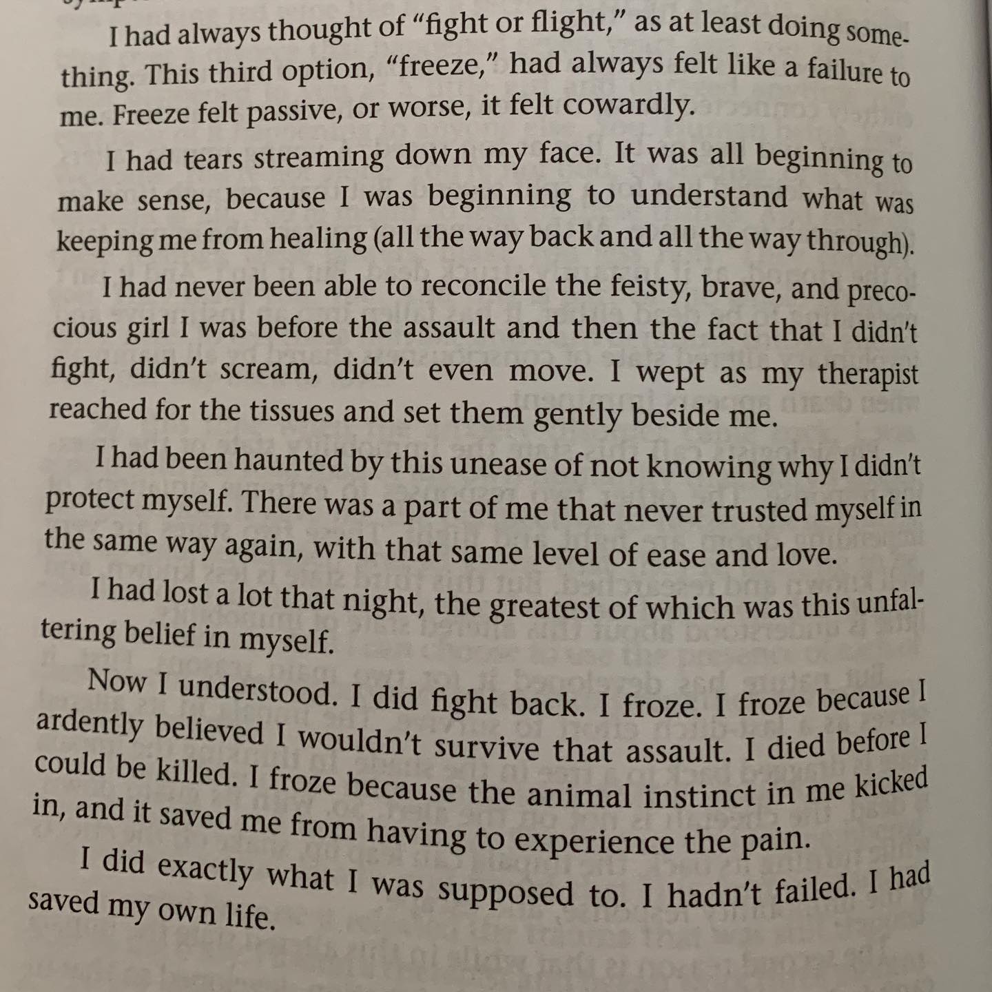 The depth in this and how she expresses the ‘freeze’ was such a revelation and explains so much to so many.⁣⁣⁣